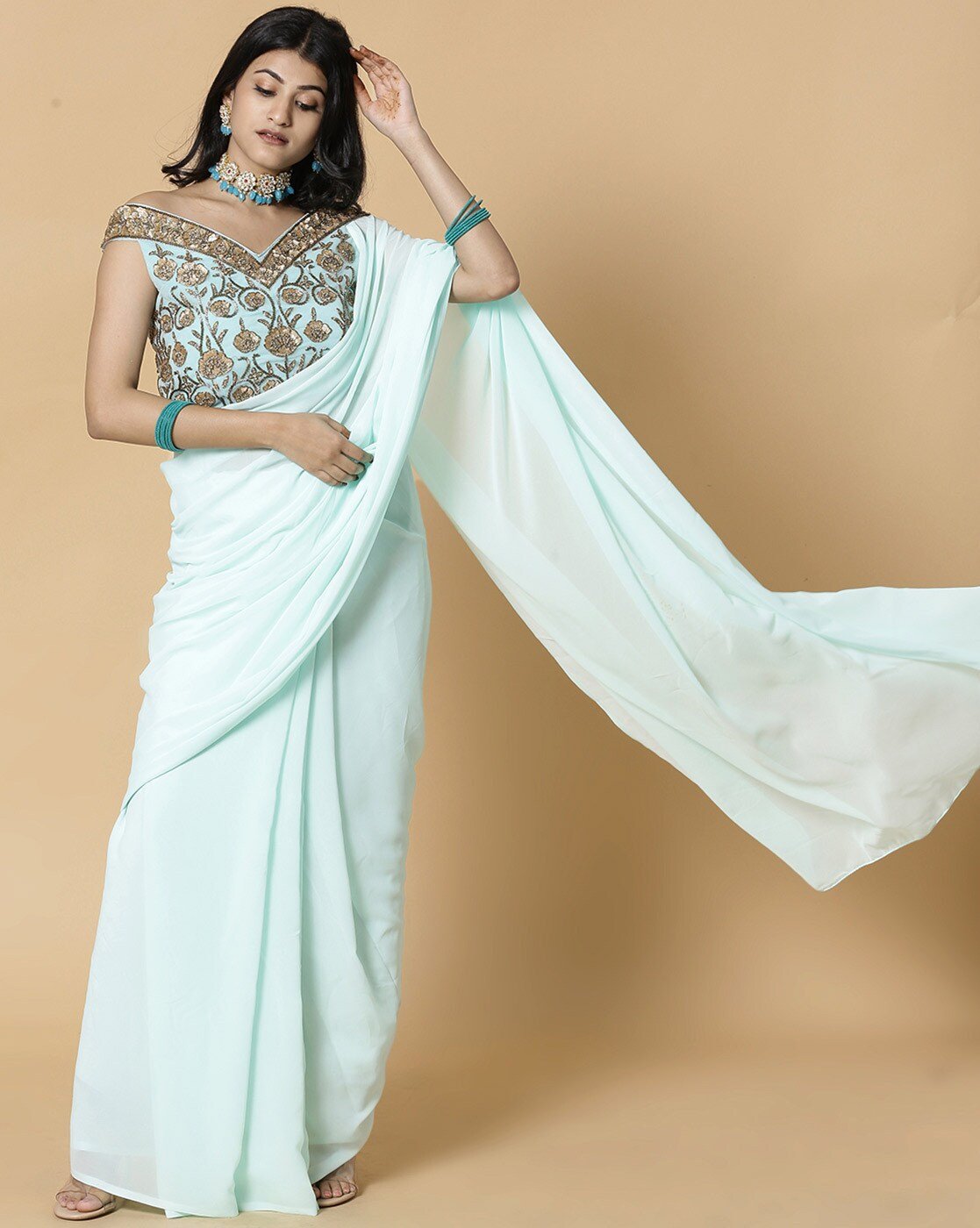 - Saree, Pre-stitched Blouse