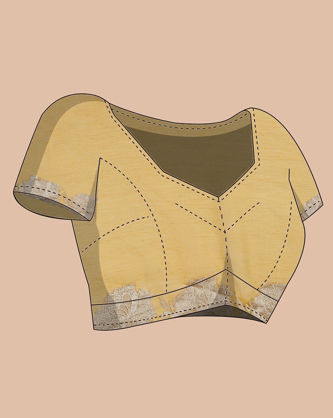 • The last image gives a detailed look of the blouse piece that comes with this saree (The model is wearing a blouse from our in-house wardrobe)