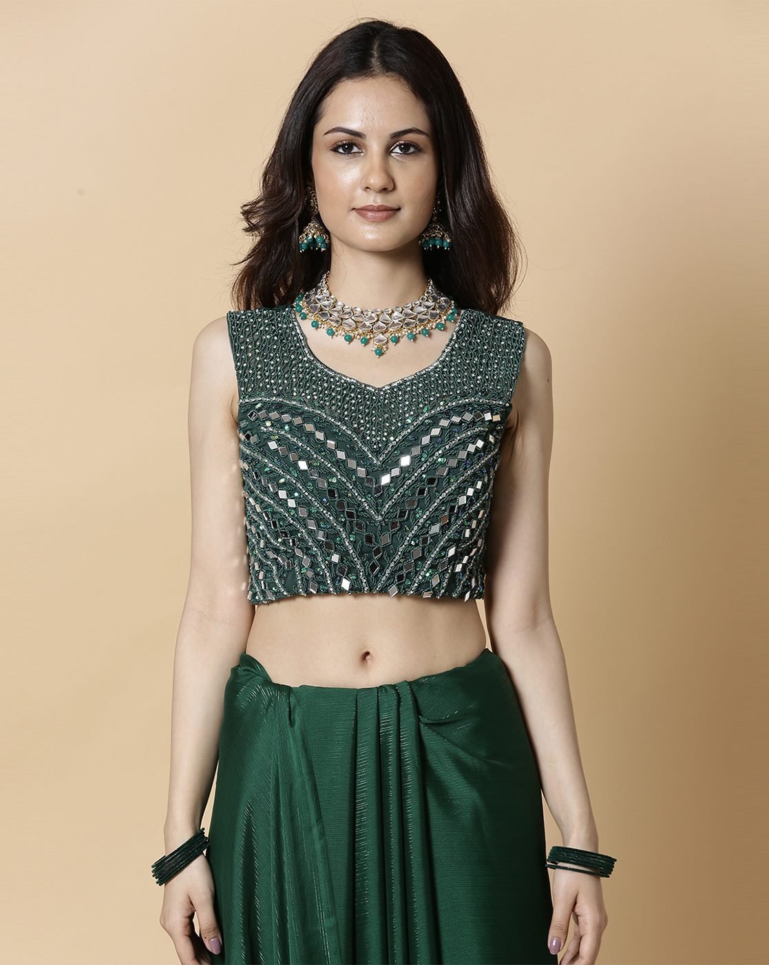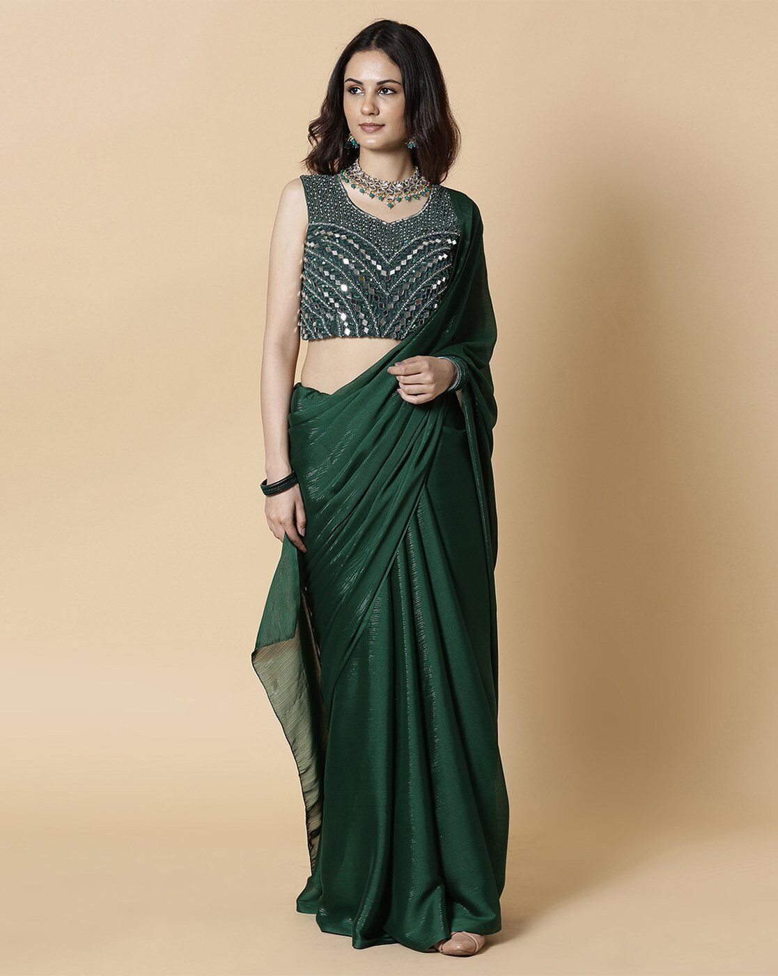 - The last image gives a detailed look of the blouse piece that comes with this saree (The model is wearing a blouse from our in-house wardrobe)