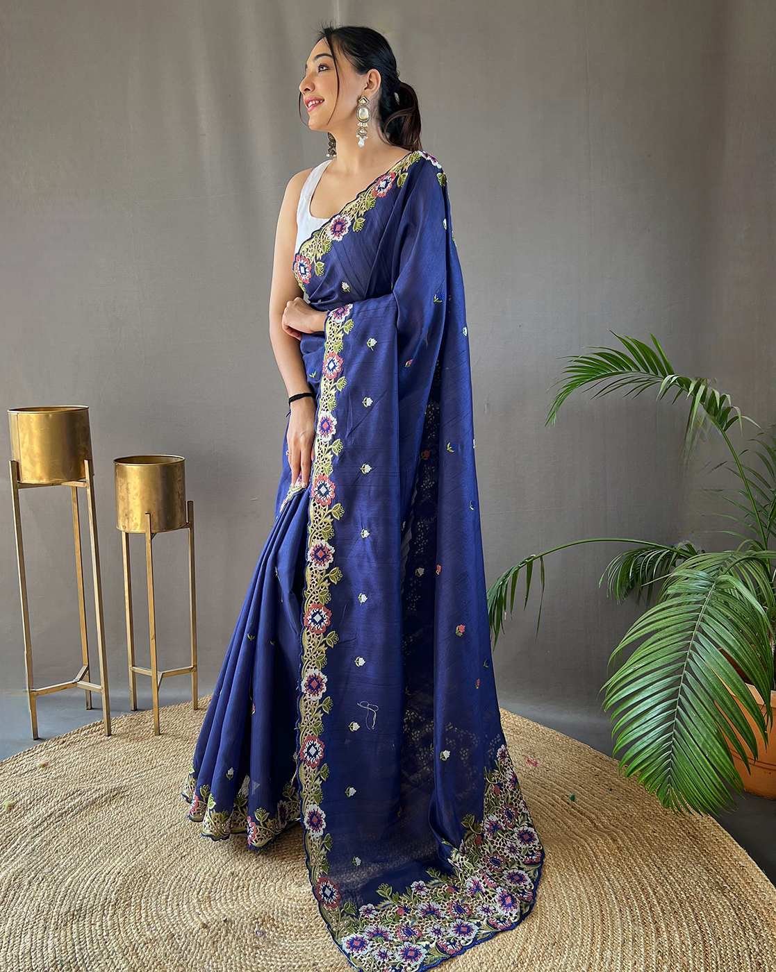 - Fancy Tussar silk saree with over beautiful contrast embroidery work And Embroidery Blouse Piece.